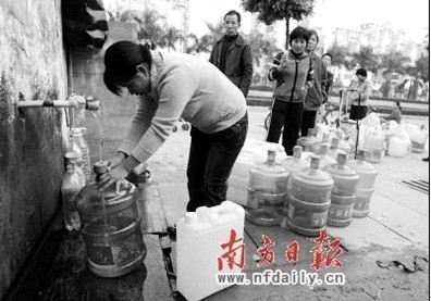 由于珠江水污染,市区河段水质已劣于V类标准,依傍珠江的广州,早已不能从珠江中直接取水。为了让广州人喝上干净的水,该市的取水口也历经多次迁移,由原来的广州流溪河,迁至27公里以外的北江顺德水道,再到现在70公里以外的西江引水。